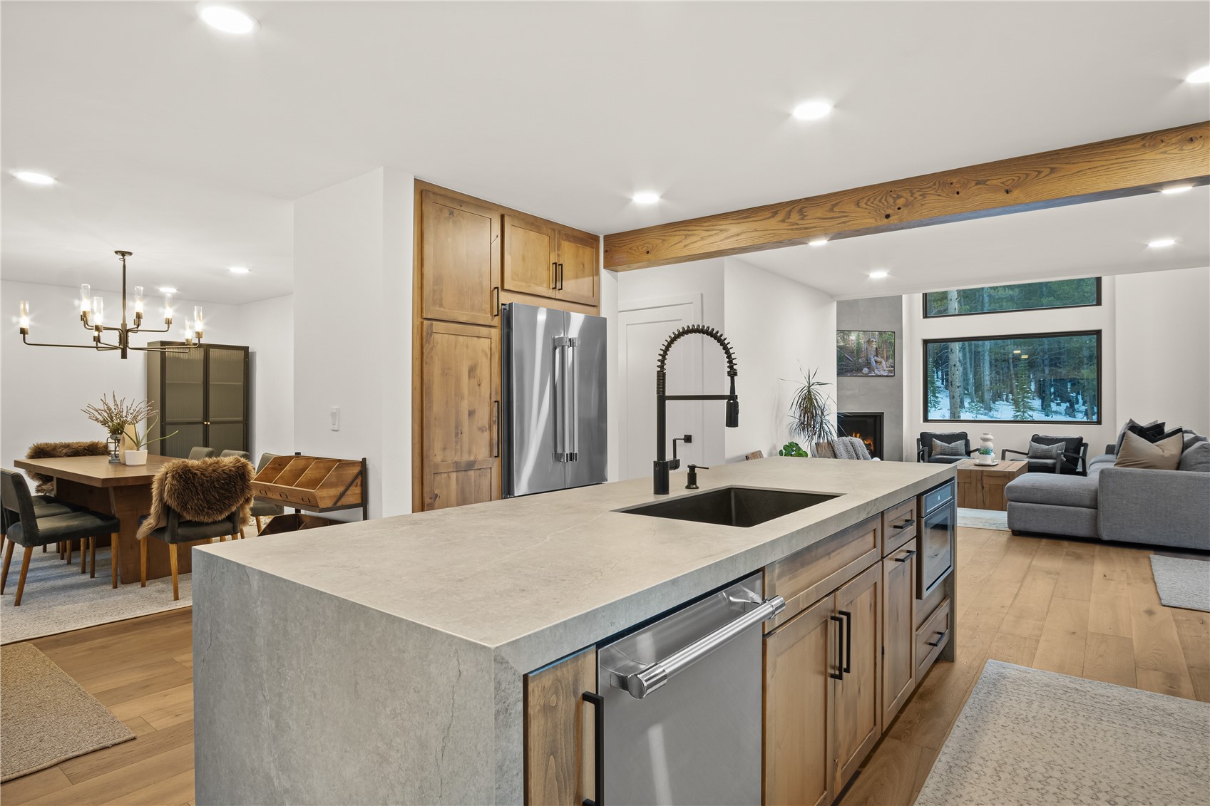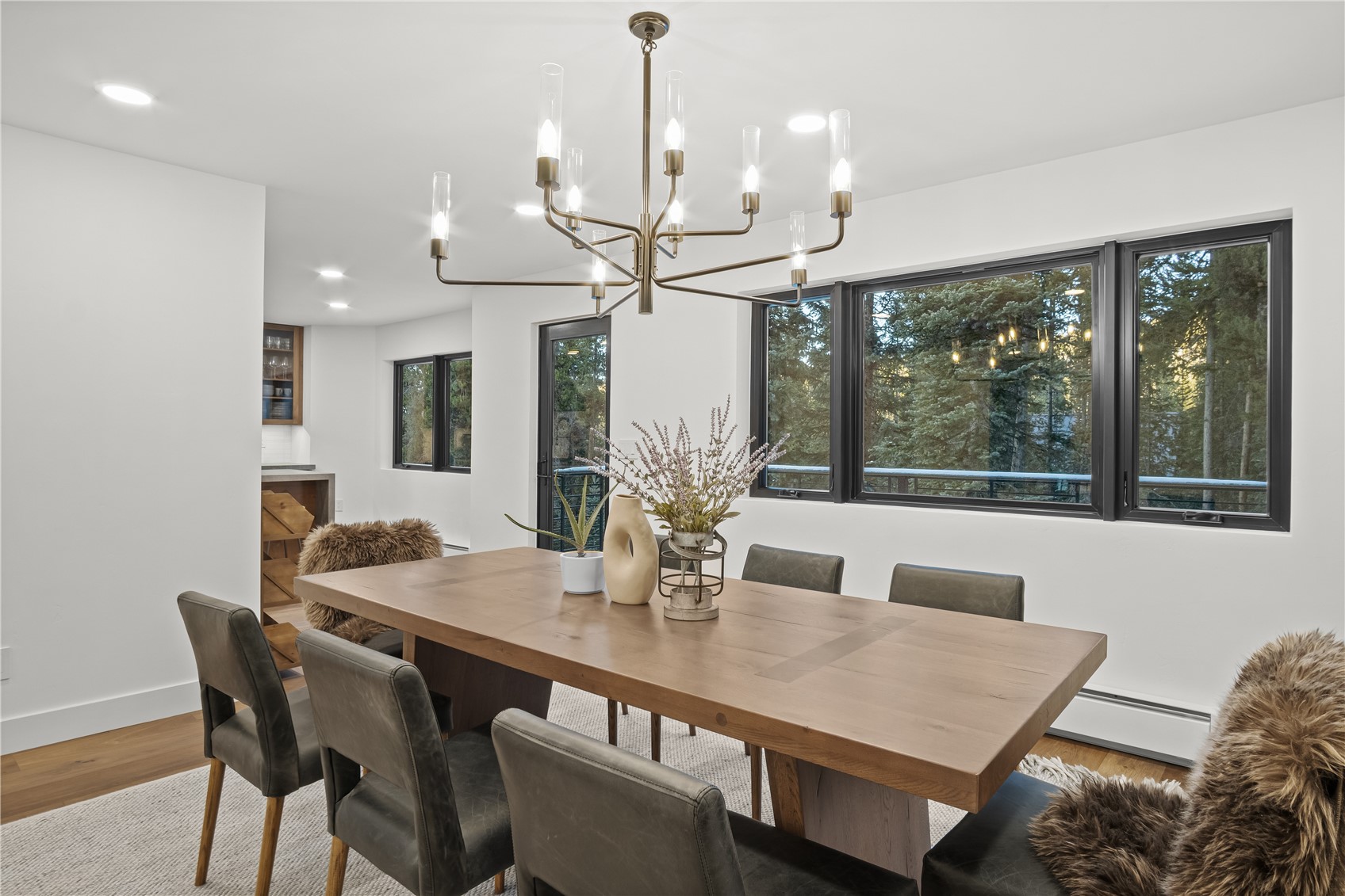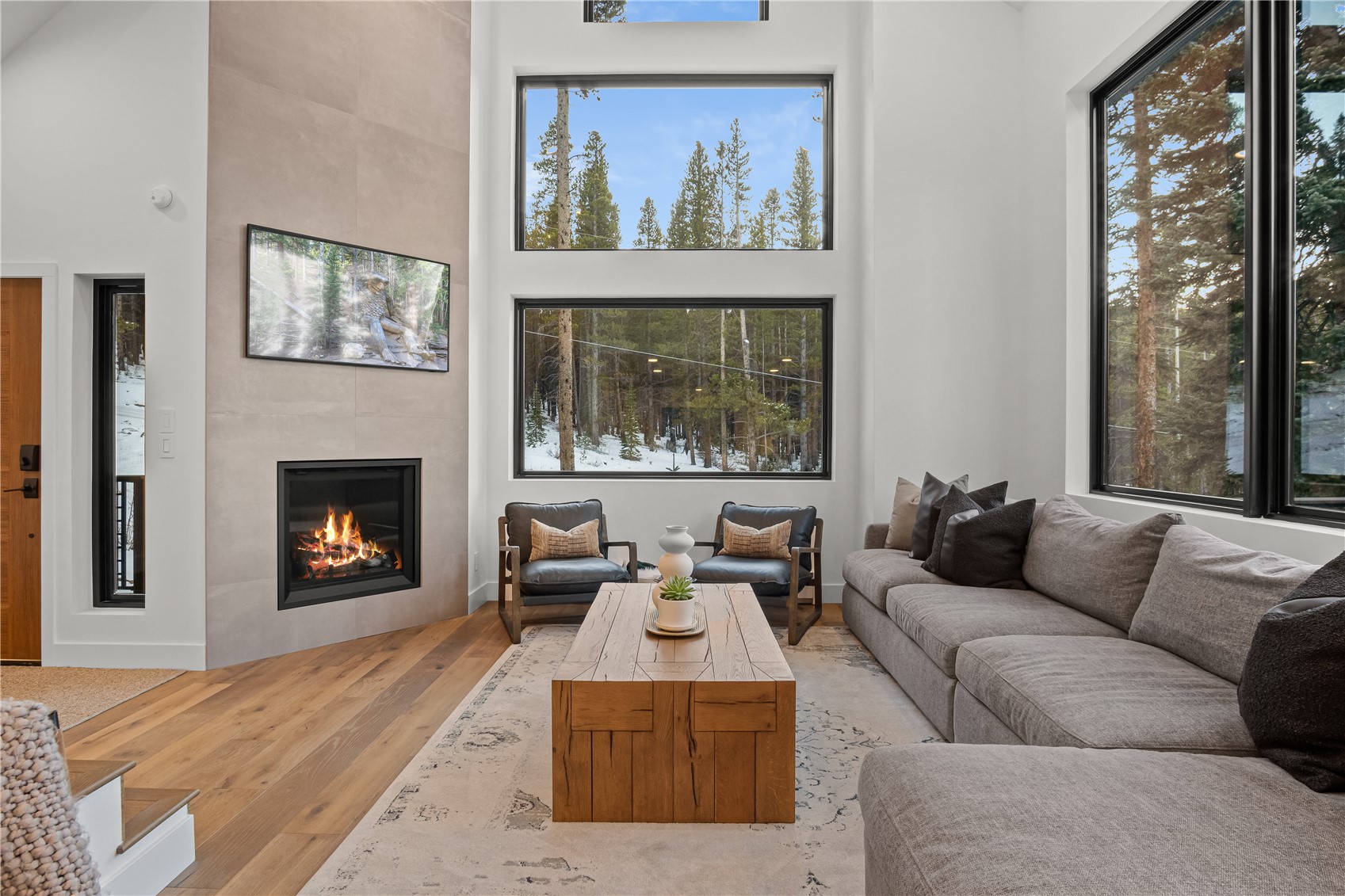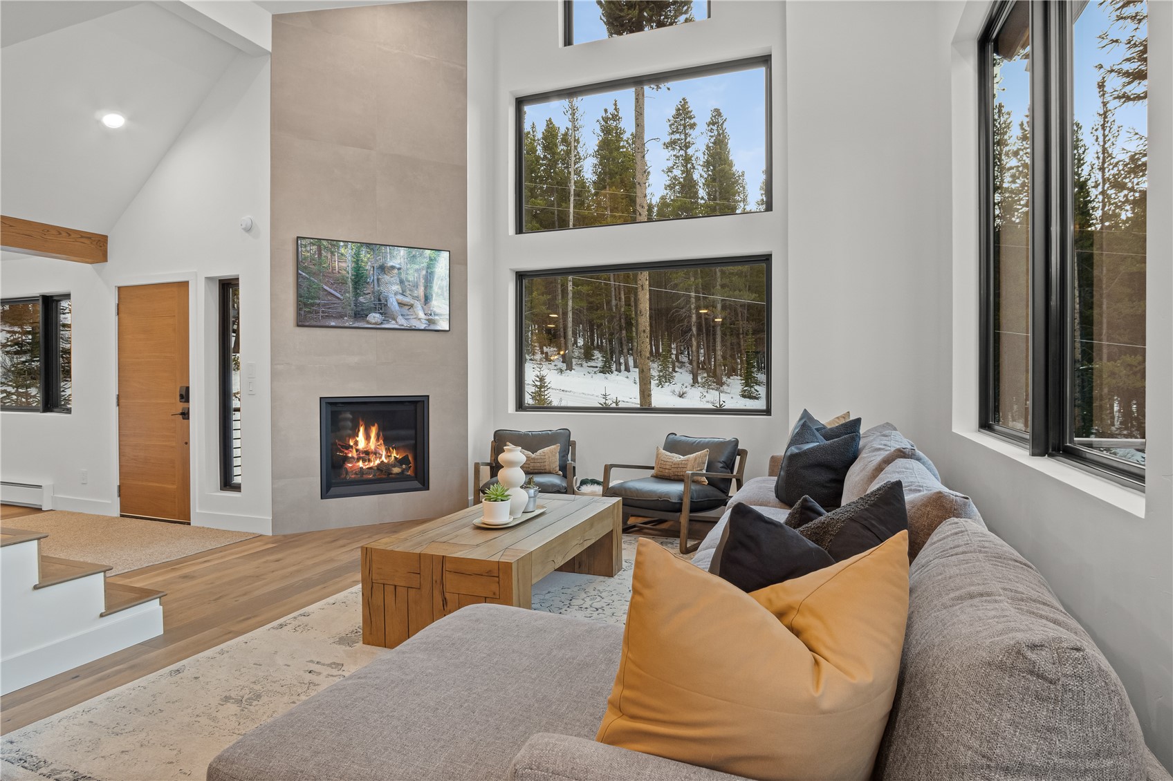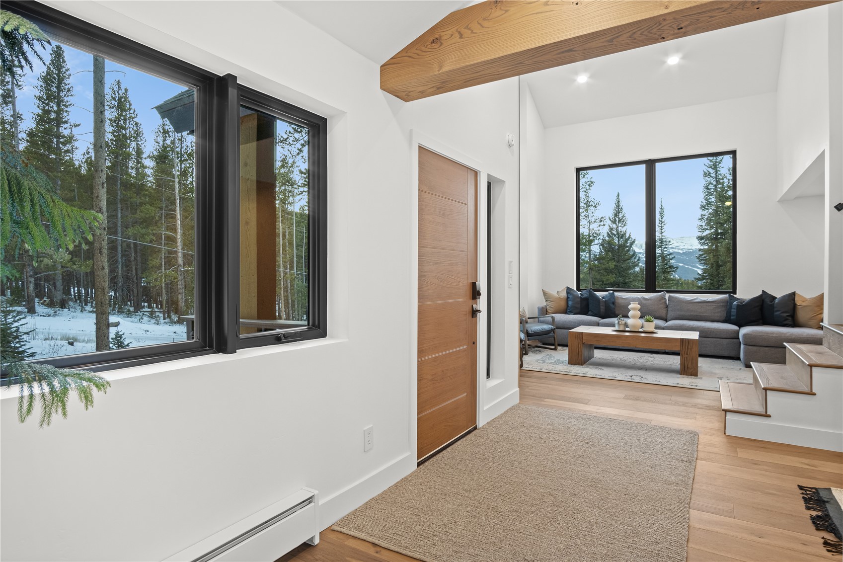 Experience the best of mountain living in this beautifully renovated Breckenridge retreat, ideally located just 7 minutes from Main Street and moments from some of the area's most sought-after trail systems. With direct access to Aspen Alley and Bankers Tank trails, and only two blocks from the Larium Trailhead, this home offers exceptional access to hiking, cross-country skiing, and backcountry adventures right out your door. Step inside to an open, light-filled living space where vaulted ceilings and expansive windows create a warm, inviting atmosphere, truly feeling like you're living in a snow globe. White oak flooring flows throughout the main level, leading into a cozy living room anchored by a gas fireplace, perfect for unwinding after a day on the slopes. The living area connects seamlessly to a chef-inspired kitchen featuring high-end appliances, sleek Dekton countertops, and thoughtful finishes throughout. The adjacent dining area is ideal for hosting gatherings with family and friends. Upstairs, the primary suite offers stunning alpine views and a spa-like bathroom with an oversized shower. Two additional bedrooms and a full bathroom provide comfortable accommodations for guests. The lower level expands the home's functionality with a secondary living area, an additional bedroom, and a full bath. A versatile mudroom/flex space with rough-in plumbing offers potential for a future wet bar or kitchenette. Surrounded by Colorado's best outdoor recreation and just minutes from Breckenridge Ski Resort, this home delivers the perfect balance of privacy, convenience, and year-round adventure.