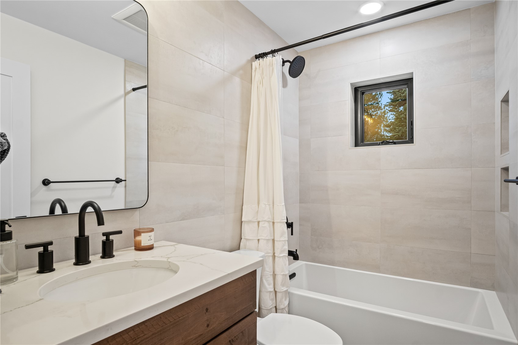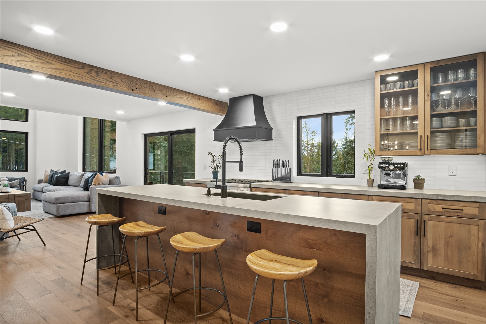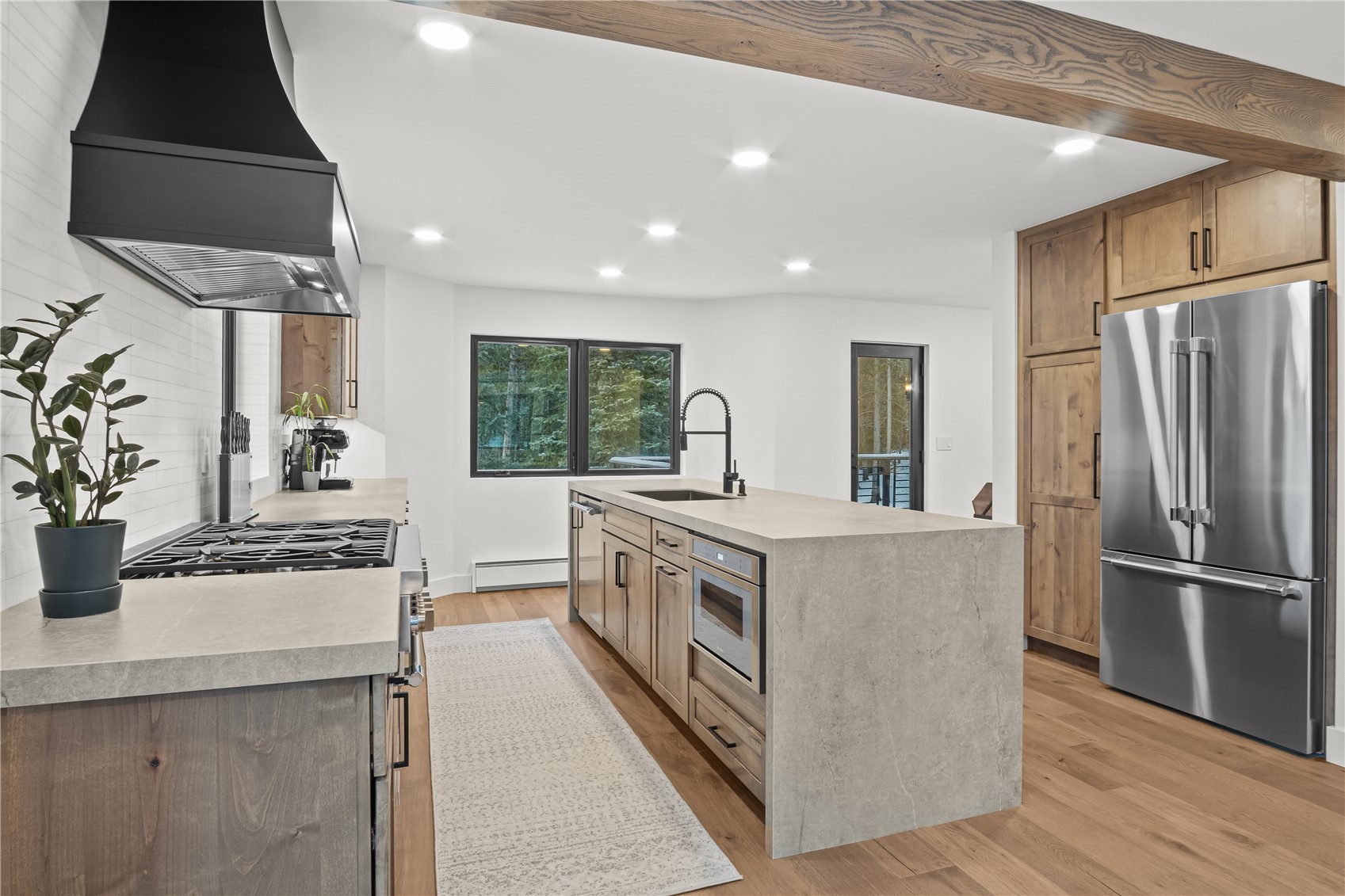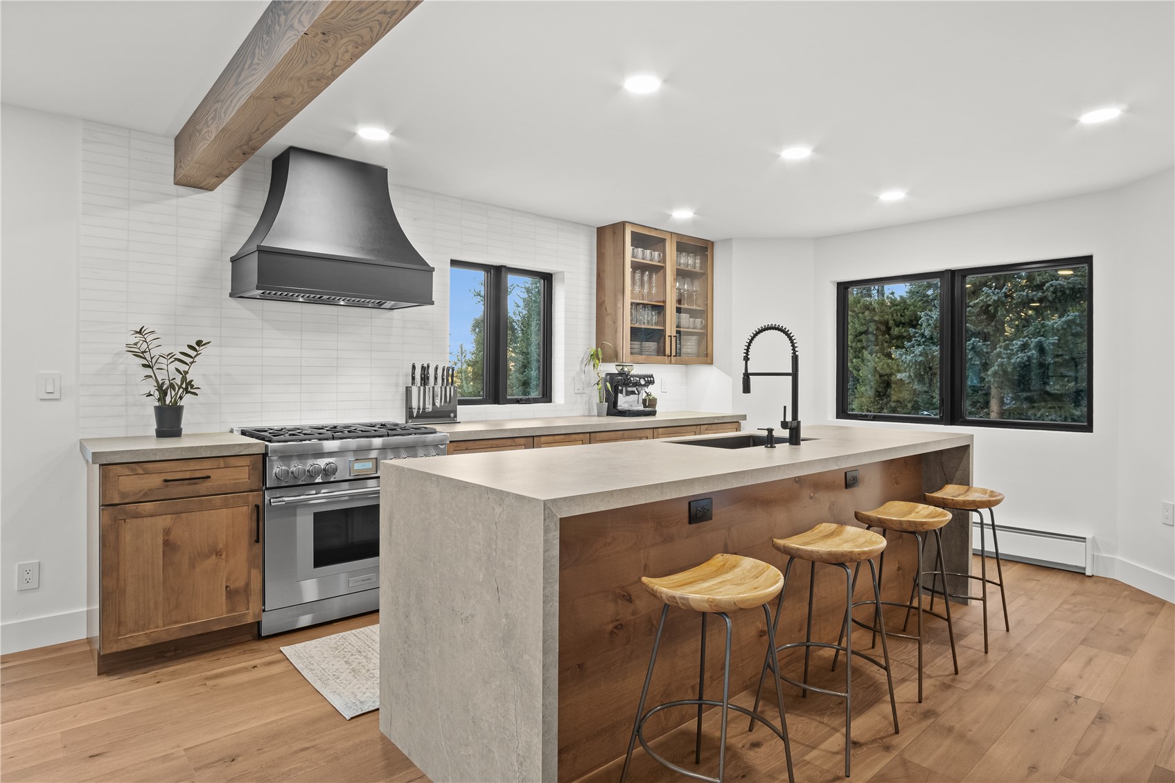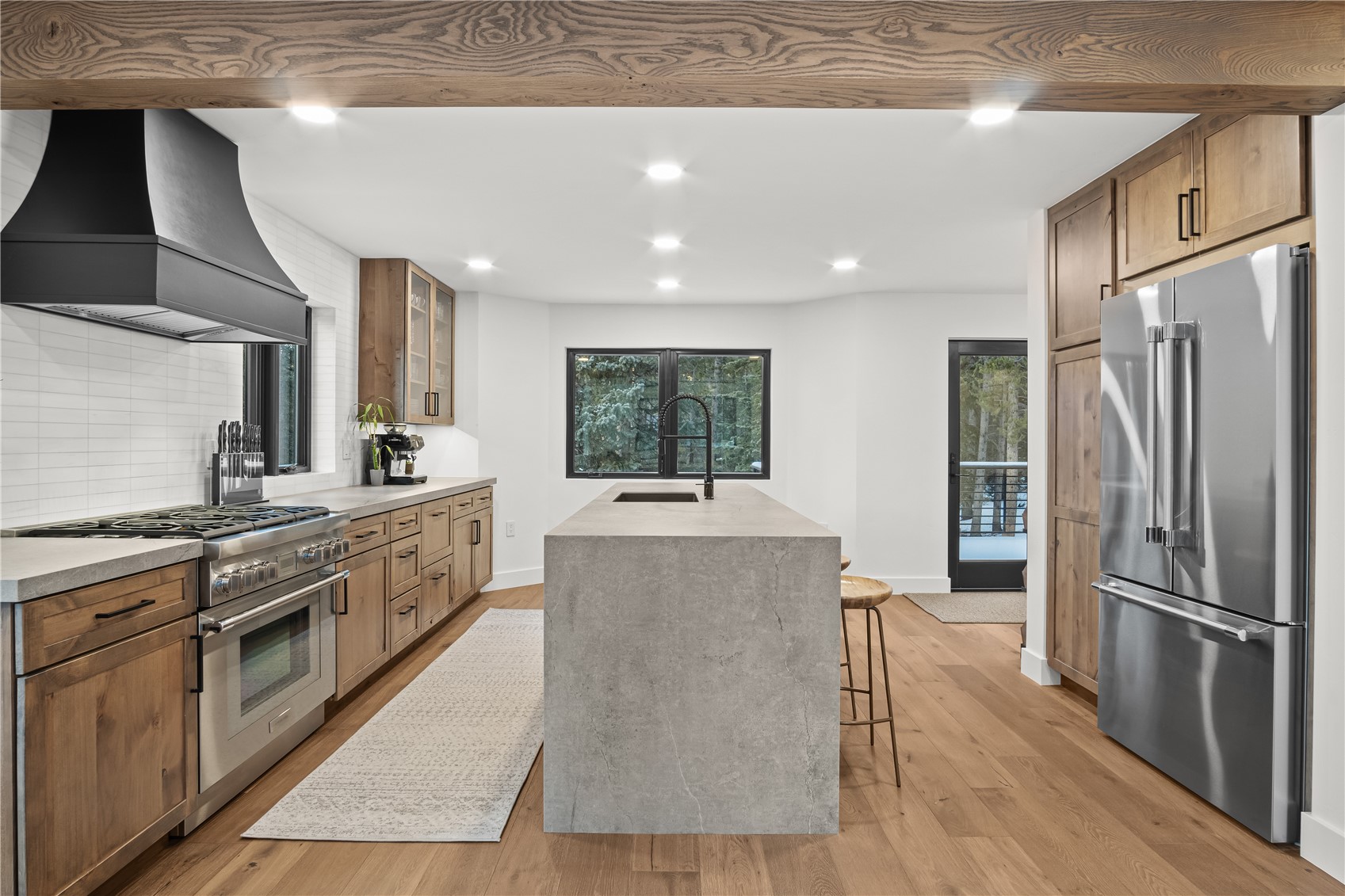 Experience the best of mountain living in this beautifully renovated Breckenridge retreat, ideally located just 7 minutes from Main Street and moments from some of the area's most sought-after trail systems. With direct access to Aspen Alley and Bankers Tank trails, and only two blocks from the Larium Trailhead, this home offers exceptional access to hiking, cross-country skiing, and backcountry adventures right out your door. Step inside to an open, light-filled living space where vaulted ceilings and expansive windows create a warm, inviting atmosphere, truly feeling like you're living in a snow globe. White oak flooring flows throughout the main level, leading into a cozy living room anchored by a gas fireplace, perfect for unwinding after a day on the slopes. The living area connects seamlessly to a chef-inspired kitchen featuring high-end appliances, sleek Dekton countertops, and thoughtful finishes throughout. The adjacent dining area is ideal for hosting gatherings with family and friends. Upstairs, the primary suite offers stunning alpine views and a spa-like bathroom with an oversized shower. Two additional bedrooms and a full bathroom provide comfortable accommodations for guests. The lower level expands the home's functionality with a secondary living area, an additional bedroom, and a full bath. A versatile mudroom/flex space with rough-in plumbing offers potential for a future wet bar or kitchenette. Surrounded by Colorado's best outdoor recreation and just minutes from Breckenridge Ski Resort, this home delivers the perfect balance of privacy, convenience, and year-round adventure.