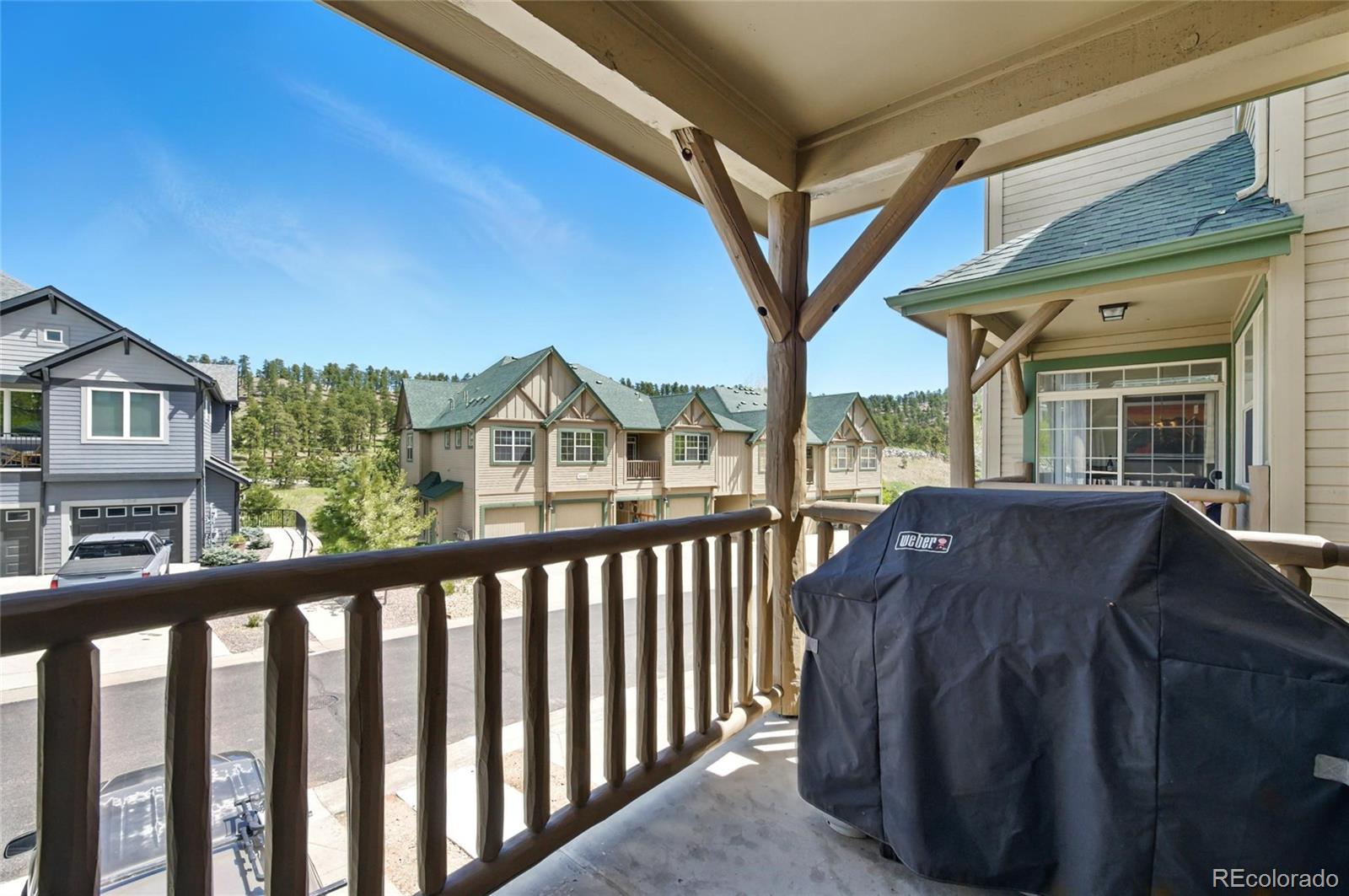 Discover the perfect blend of mountain charm and modern convenience in this beautifully appointed townhome. Nestled in a serene Evergreen community, this residence offers effortless access to Colorado's great outdoors as well as urban conveniences. The open-concept main level is warm and inviting, featuring a cozy fireplace in the living area that seamlessly connects to the dining space and well-equipped kitchen. Step outside to your private patio - with a peaceful location perfect for enjoying your morning coffee or winding down with a glass of wine. Upstairs, the spacious primary suite is your personal sanctuary, complete with a luxurious five-piece en-suite bath and double vanity. A generous second bedroom and an additional full bath provide plenty of space for family or guests. The entryway is finished with stylish herringbone tile and leads to a flexible bonus room - perfect for a home office, fitness area, or extra storage. An oversized attached one-car garage offers ample room for your vehicle and all your outdoor gear. Situated within walking distance to the grocery store dining and shopping and only a short drive to downtown Evergreen, Red Rocks Amphitheatre, and a vast network of hiking and biking trails, you'll have easy access to year-round adventure. With I-70 nearby, weekend ski trips or a night out in Downtown Denver are always within reach.