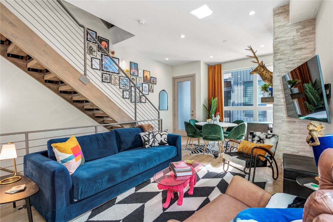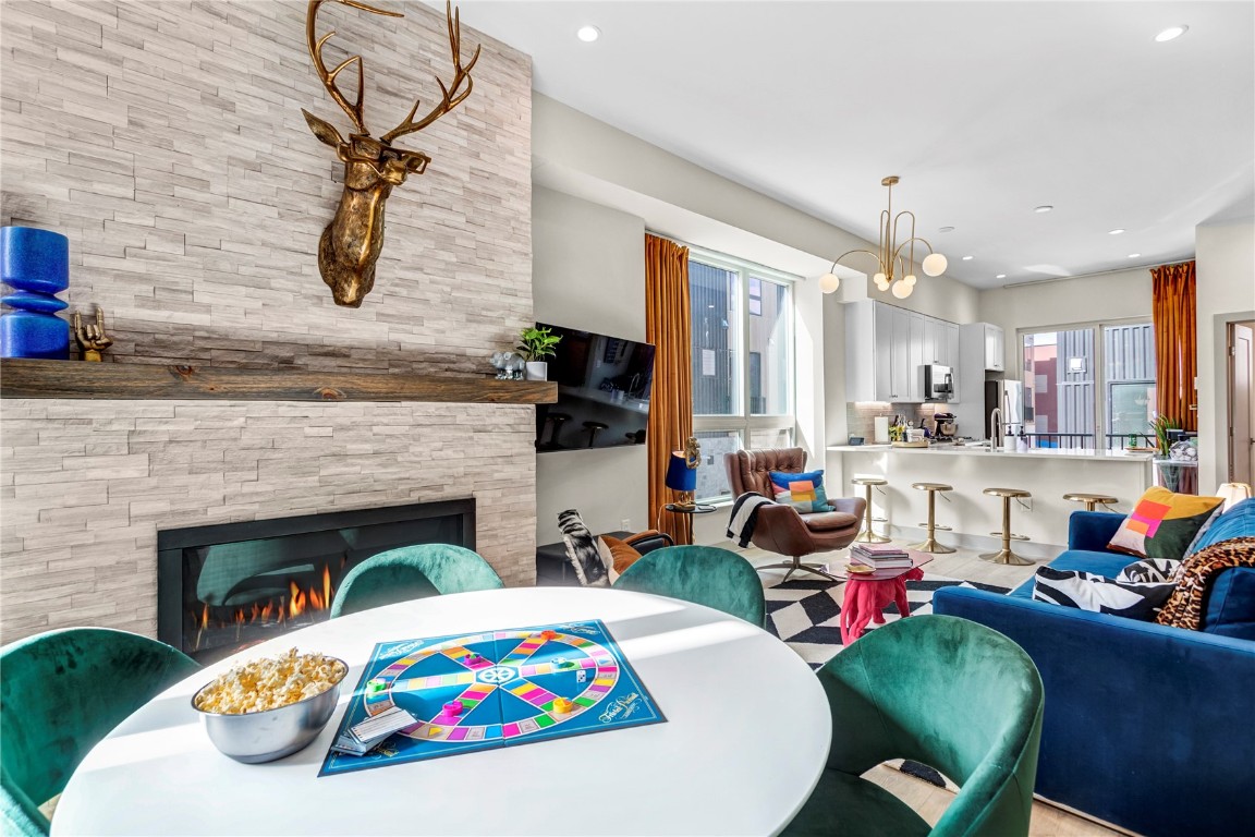 Welcome to the Elevate Rowhomes at 4th Street Crossing! This new and modern development is located right in the heart of Silverthorne with the perfect blend of mountain and urban living. Centrally located within Summit County, 4th Street Crossing provides easy access to world class skiing at Keystone, Arapahoe Basin, Breckenridge, and Copper Mountain while remaining walkable to the Bluebird Market, Angry James Brewery, Art Spot Silverthorne, Silverthorne Performing Arts Center, and a public transit center. This incredible end-unit is outfitted with extra windows, tandem 2 car garage, stainless steel appliances, quartz countertops, a designer fireplace, luxury vinyl flooring, floating staircase, and trendy furnishings throughout. If you're looking for those amazing sunsets and views, follow the stairs up to the top floor where you'll find the rooftop deck with seating and a gas fireplace to keep you warm. Don't miss out on owning this centrally located townhome with great short term rental opportunity.