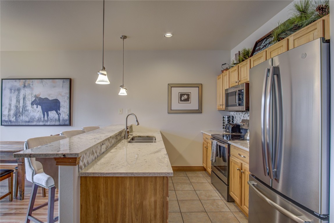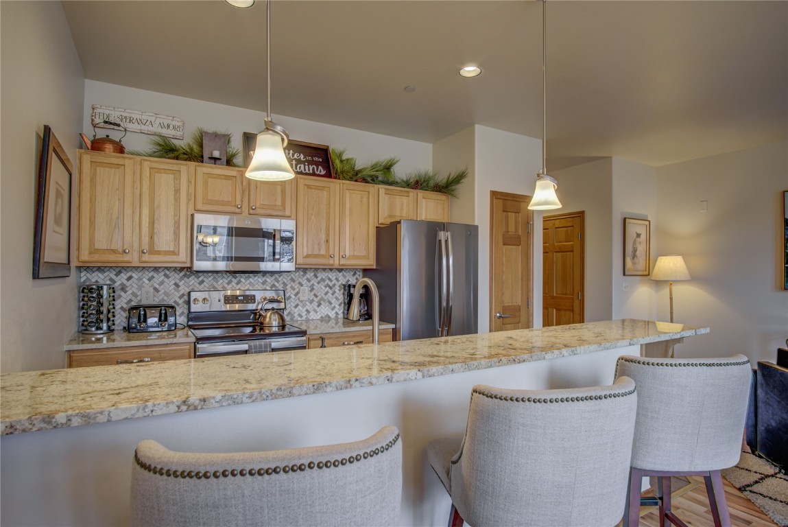 Great property in the heart of Silverthorne. This large 1st floor condo has an open floor plan, ample storage and is next to the Blue River. The condo features 1 bedroom, 1.5 bathrooms, in-unit laundry, gas fireplace, and expansive views of Buffalo and Red Mountain. Recently updated stainless steel appliances, flooring, countertops, and furnishings enable you the ability to start renting or using it right away. Take full advantage of fishing, biking, hiking, restaurants, and events right out your door! Check out Silverthorne's new core with the SilCo theater (Performing Arts Center), the Art Spot (Makers Space) as well as the Bluebird Market a micro-district with shopping and dining offering something for everyone.