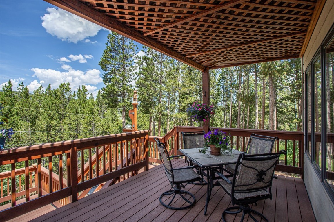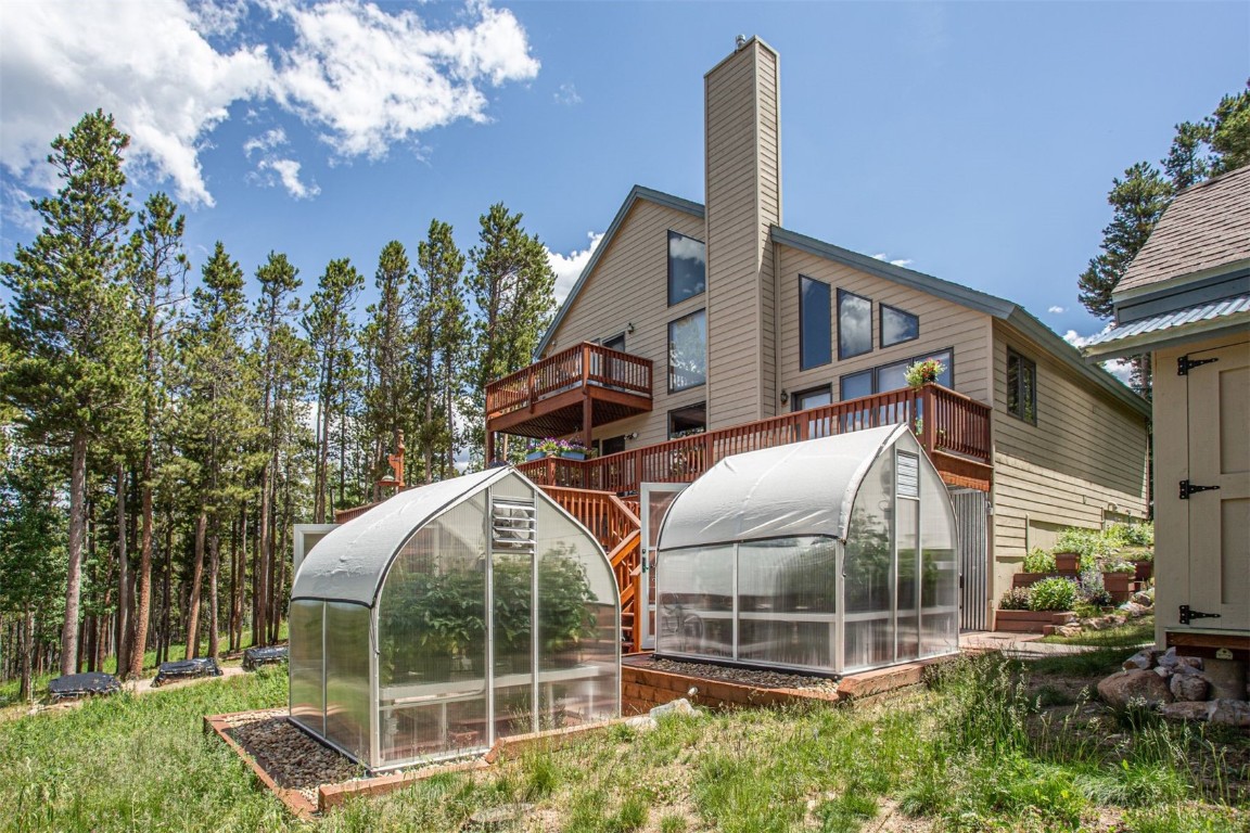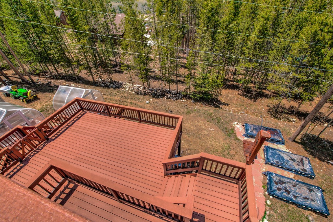 Welcome to your dream mountain retreat in Breckenridge! This beautifully maintained home offers an unparalleled combination of comfort and breathtaking natural beauty. Nestled on a nicely wooded lot, this property has a vacated lot line to protect your stunning mountain vistas. Step inside to discover an inviting living space with vaulted ceilings and an abundance of windows that flood the home with natural light, creating a seamless connection between indoors and outdoors. The well-appointed kitchen and open-concept living areas provide a perfect setting for entertaining family and friends. With the potential to create a fourth bedroom in the lower level, this home offers flexible living options to suit your needs. Plus enjoy all the extra storage throughout the home! Soak in the mountain air from multiple decks, perfect for outdoor dining, relaxation, and soaking in the amazing mountain views. The extensive outdoor living spaces are complemented by two powered greenhouses and a large shed, ideal for storing all your outdoor gear and tools. Whether you're seeking a serene escape or a base for adventure, this property delivers on all fronts.