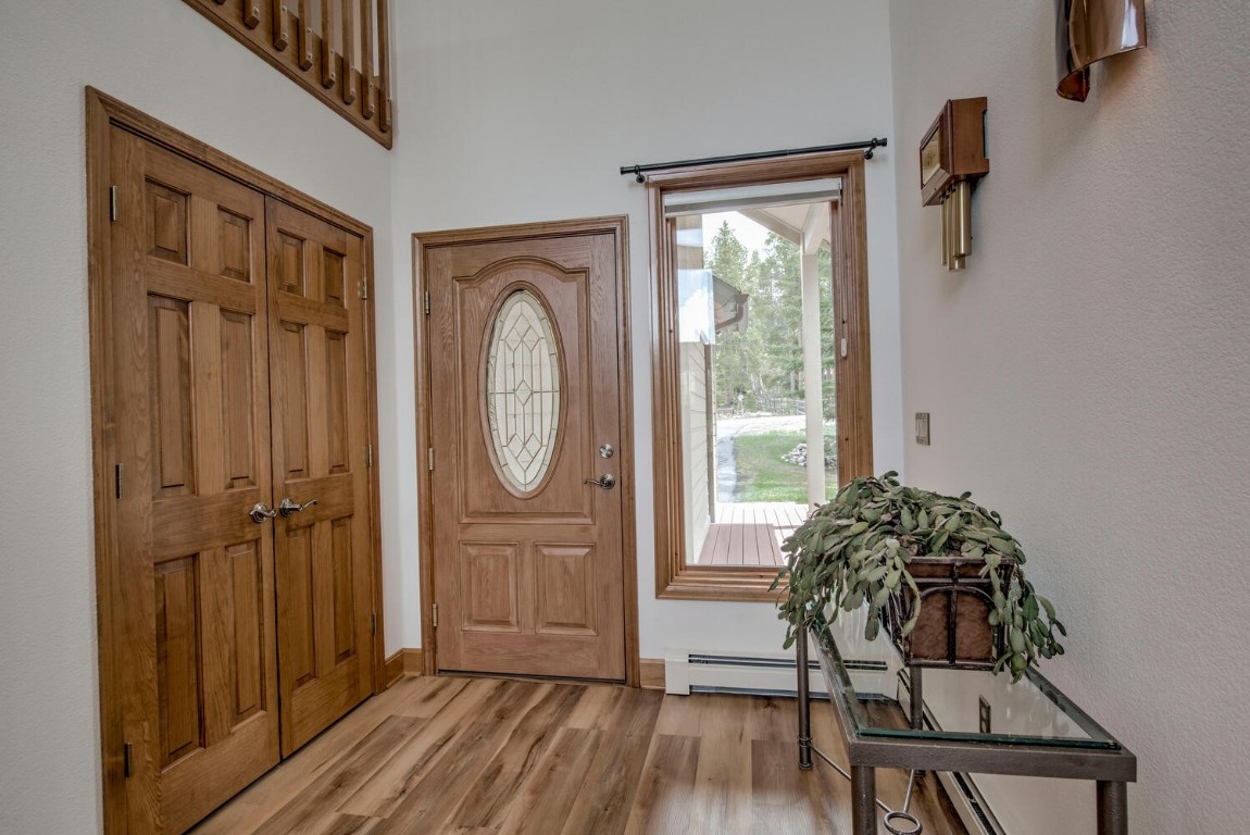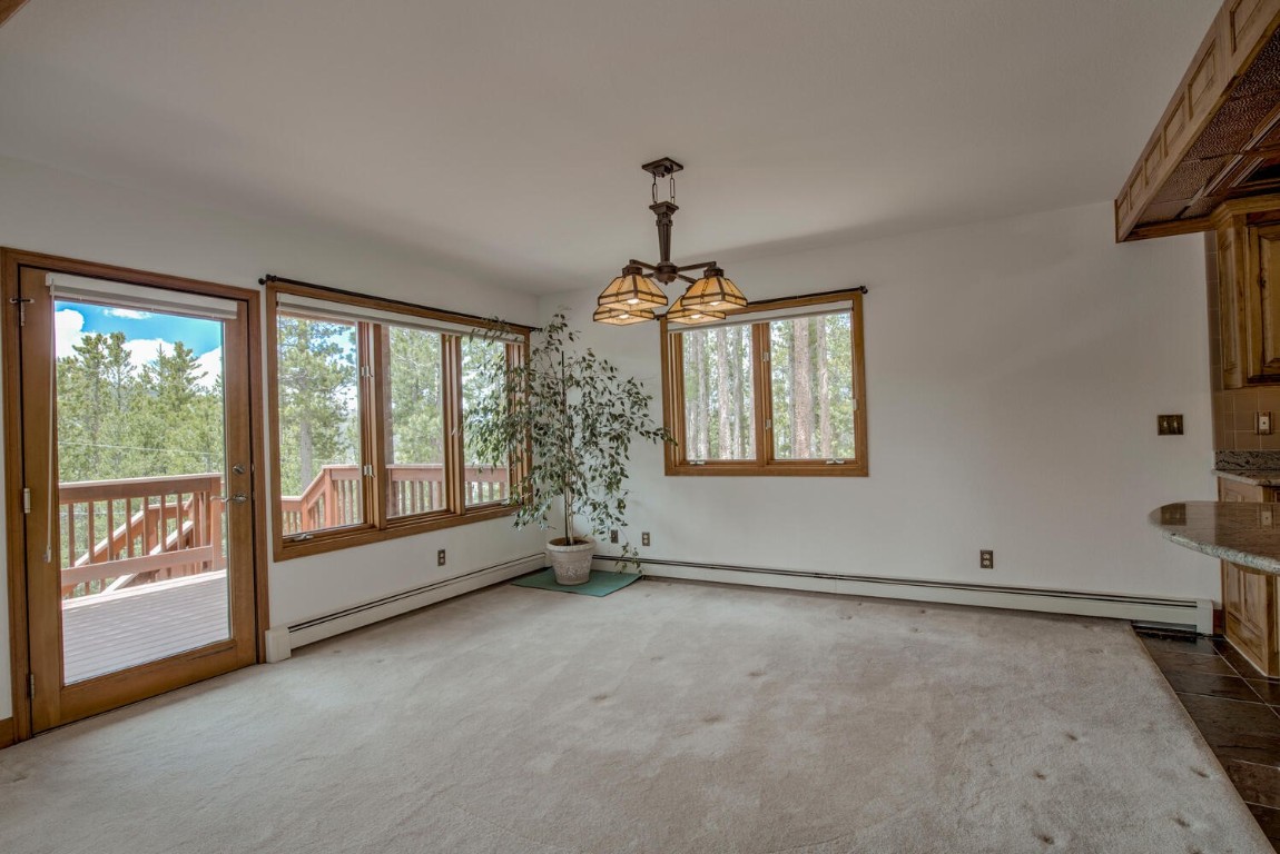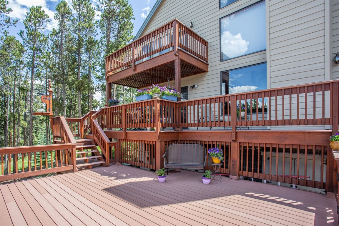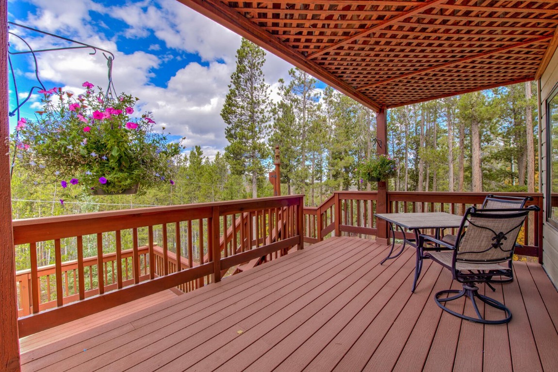 Welcome to your dream mountain retreat in Breckenridge! This beautifully maintained home offers an unparalleled combination of comfort and breathtaking natural beauty. Nestled on a nicely wooded lot, this property has a vacated lot line to protect your stunning mountain vistas. Step inside to discover an inviting living space with vaulted ceilings and an abundance of windows that flood the home with natural light, creating a seamless connection between indoors and outdoors. The well-appointed kitchen and open-concept living areas provide a perfect setting for entertaining family and friends. With the potential to create a fourth bedroom in the lower level, this home offers flexible living options to suit your needs. Plus enjoy all the extra storage throughout the home! Soak in the mountain air from multiple decks, perfect for outdoor dining, relaxation, and soaking in the amazing mountain views. The extensive outdoor living spaces are complemented by two powered greenhouses and a large shed, ideal for storing all your outdoor gear and tools. Whether you're seeking a serene escape or a base for adventure, this property delivers on all fronts.